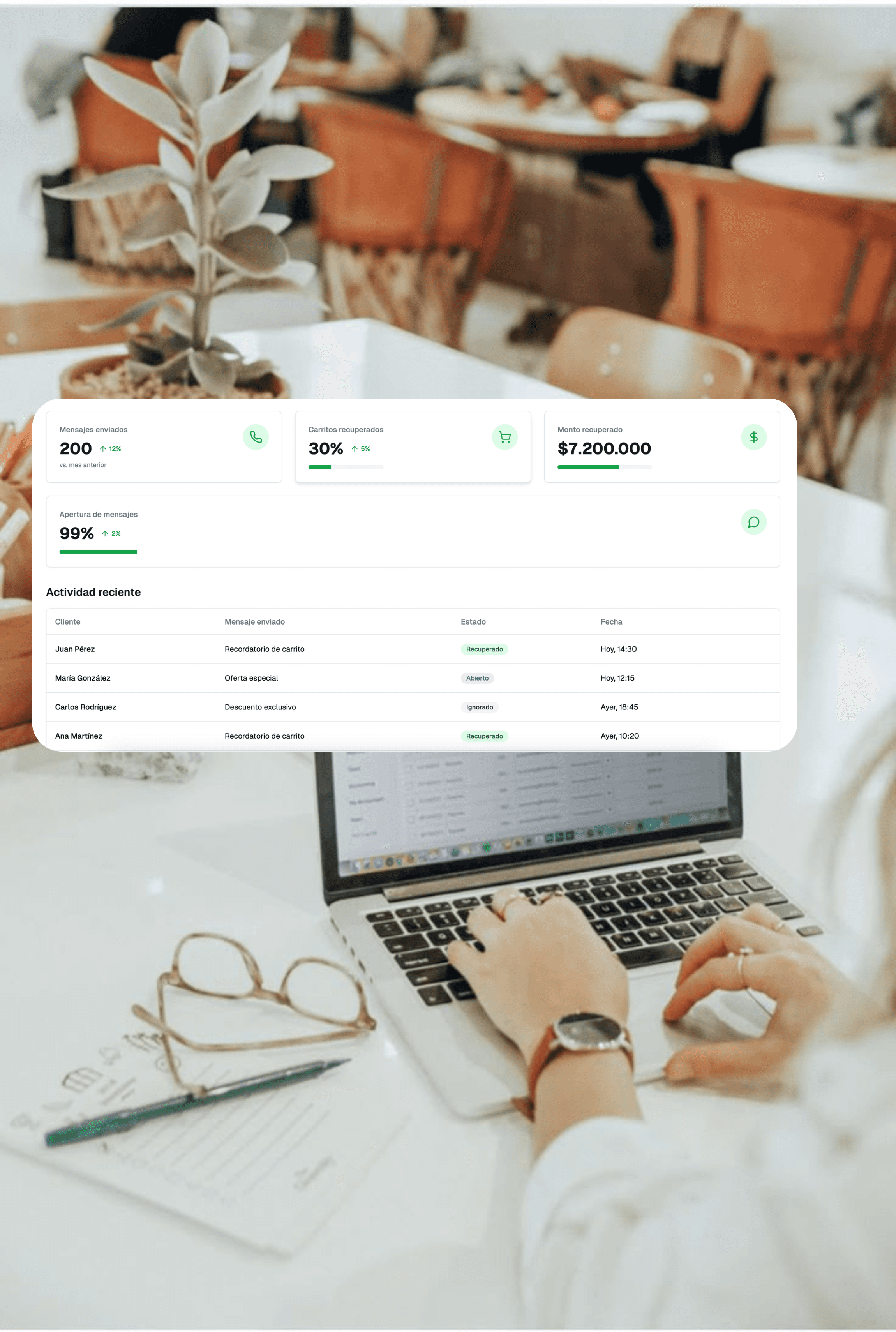 No solo recuperás ventas: también medís cada mensaje en un dashboard con estadísticas para saber qué funciona y optimizar tus resultados